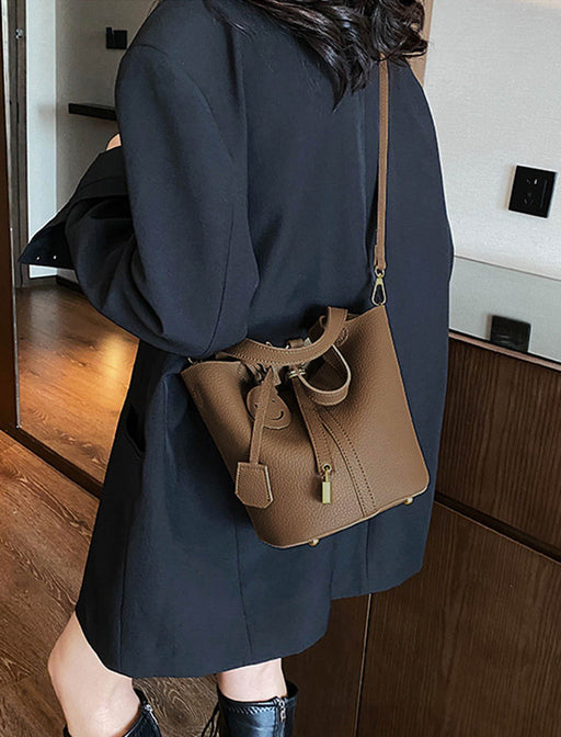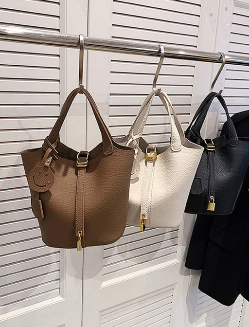 スエード調のやわらかな質感と、揺れるチャームが上品なアクセント。 肩掛け・手持ちどちらも楽しめる2way仕様で、コーディネートに合わせてバランスよく使い分けられます。 デイリーにもお出かけにも活躍する、大人のこなれバッグ。