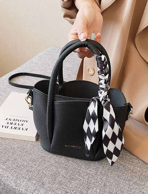 シンプルながらも華やかさを加えたデザインが魅力のスカーフ付き2WAYミニバッグ。<br>2WAY仕様で、ショルダーバッグとしても、ハンドバッグとしても使えるので、スタイルや用途に応じた使い方が可能です。<br>インナーポーチも付いており、小物を整理して収納できるので、使...