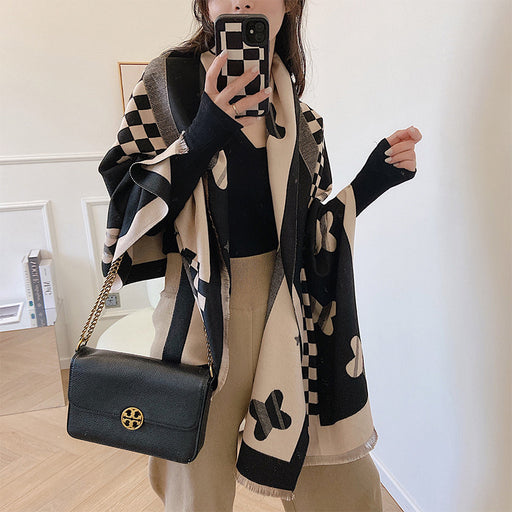 チェック柄と無地のリバーシブルで、巻き方次第で表情が変わる三角マフラー。 首元にさっと巻くだけで、コートスタイルのアクセントに。 重たいアウターにもカラーポイントとして取り入れやすく、コーデをぐっと華やかに演出します。