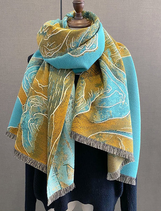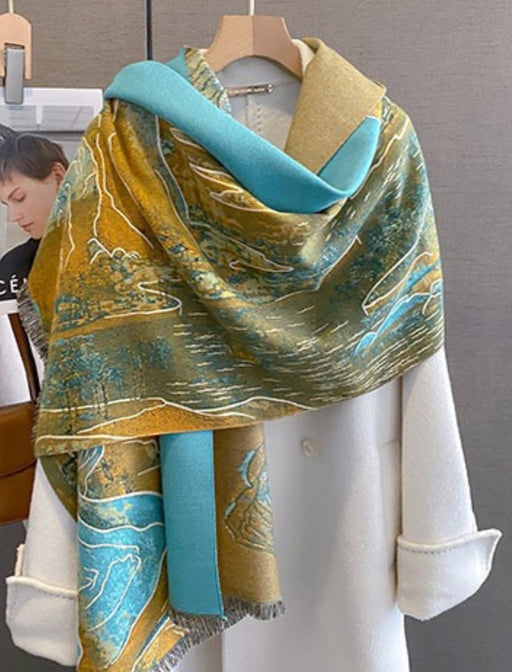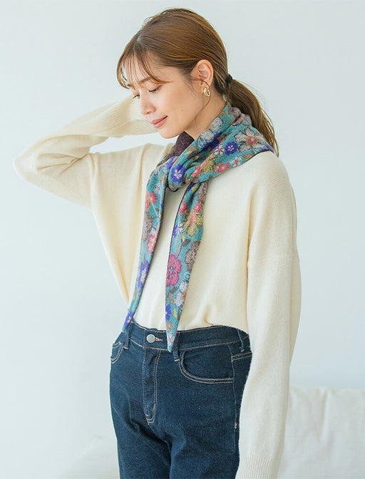 まるで絵画のように美しい色彩が魅力。 透け感のあるシフォン素材が、顔まわりにやわらかな明るさを添えます。 シンプルな装いにプラスするだけで、印象がぱっと華やぐ一枚。