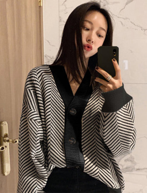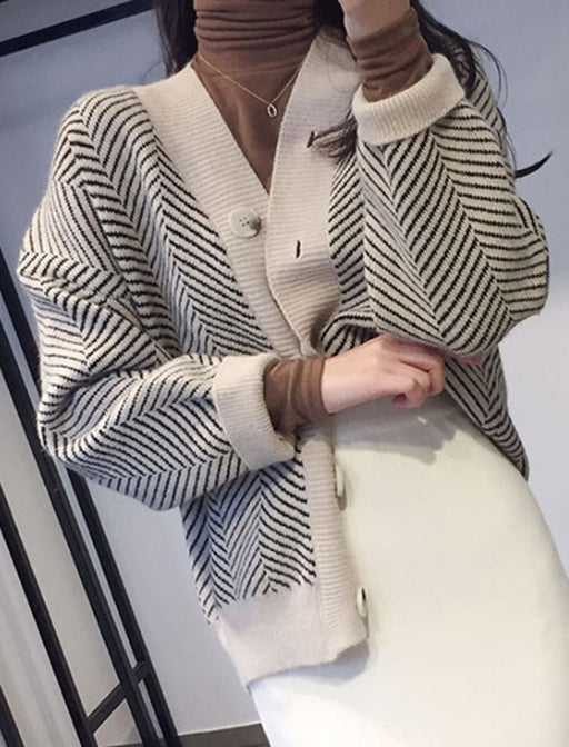 トレンドのヘリンボーン柄が目を引くニットカーディガン。 ゆったりとしたオーバーサイズとドロップショルダーでこなれ感を演出します。 Vネックラインが顔周りをすっきりと見せ、羽織るだけで旬のスタイルが完成。