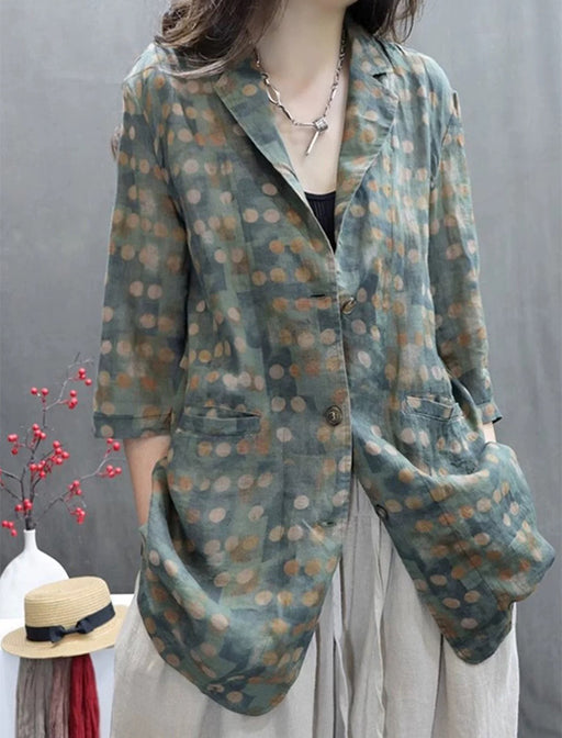 リズミカルな変形ドットプリントが目を引く、ゆったりシルエットのブラウス。<br>軽やかな素材感で着心地も快適。<br>気になる体のラインをさりげなくカバーしながら、程よい華やかさを演出します。