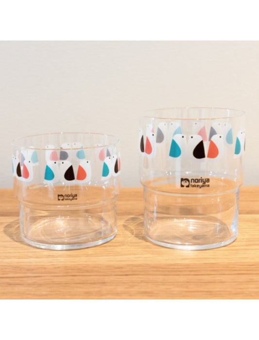 イラストレーターであるタケヤマ・ノリヤさんが描いた、可愛らしい小鳥がオシャレなスタッキンググラスです。