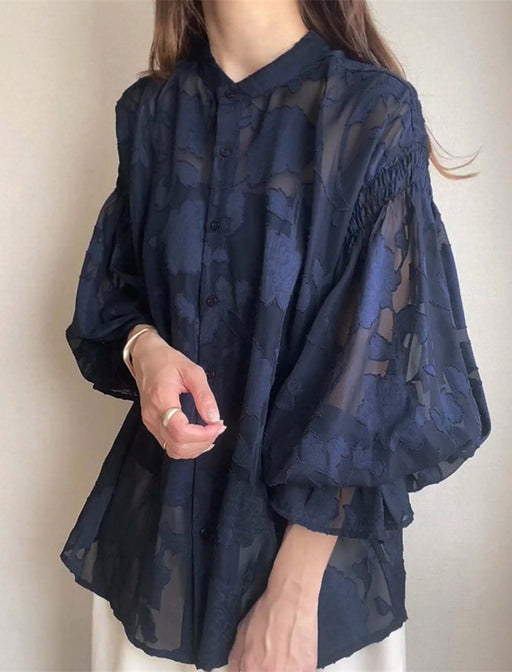 シンプルな中の華やかさ、光を纏うオーガンジーブラウス。 クラシックとモダンの狭間で華を添えるデザインが遠目にも高級感が伝わります。 ほんのりと肌を見せることで女性らしさを演出し、華やかな昼の会やお呼ばれシーンにも◎