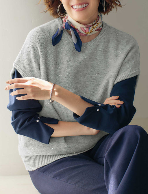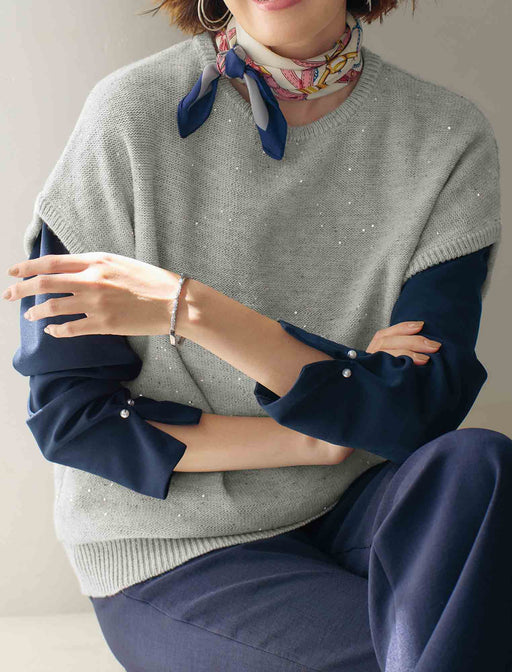 ちりばめたスパンコールがキラキラと輝きを放つ。 細やかなスパンコールが編み込まれたニットベスト。 着こなしを明るく新鮮に見せてくれます。