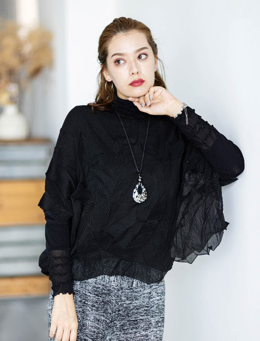 着るだけでレイヤードスタイルが完成する、異素材を組み合わせた3WAYアンサンブル。 シフォンプリーツのゆったりシルエットプルオーバーと、ランダムメローが目を惹くジャージ素材のハイネック。 華やかなアンサンブルはお出かけやパーティーシーンでも活躍する優秀アイテム◎