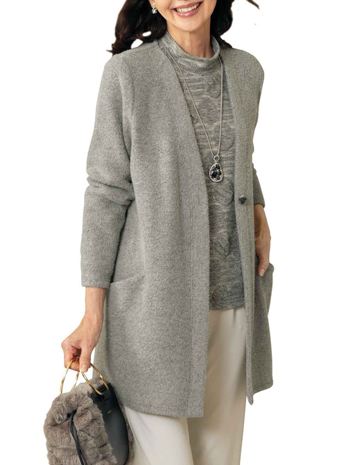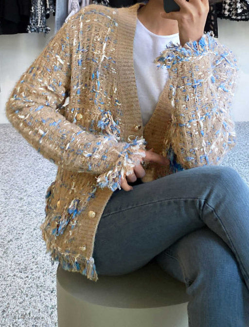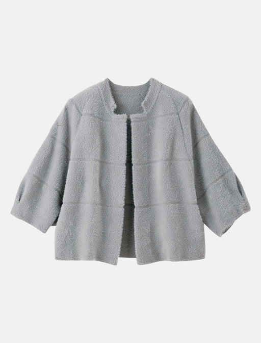 上質感のあるツイード調素材で、羽織るだけで華やぐカーディガン。 ジャケットのきちんと感と、カーディガンの軽やかさを両立。 ボタンを留めて一枚着としても、さらりと羽織っても様になる万能アイテムです。