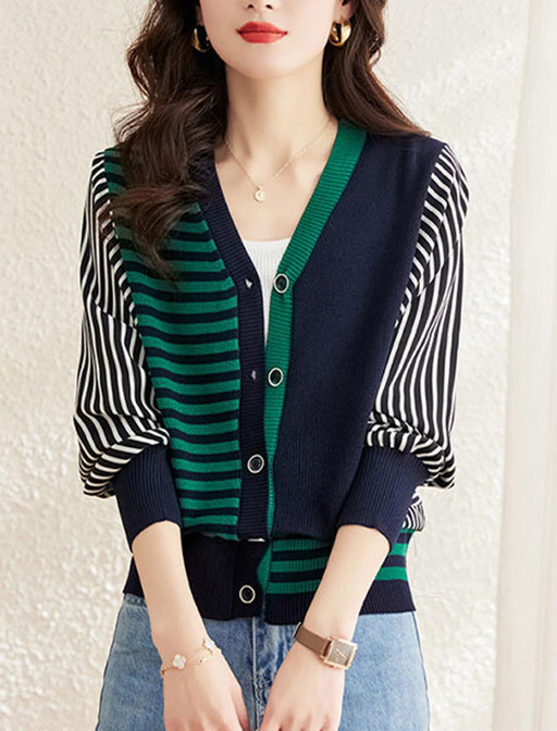 ¥7,690 - ¥7,690¥7,690¥7,690 - ¥7,690¥7,690異素材ボーダーストライプ柄ニットカーディガン