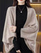 繊細な透かし編みと、ドレープが美しいショールデザインを組み合わせた、エレガントなニットカーディガン。