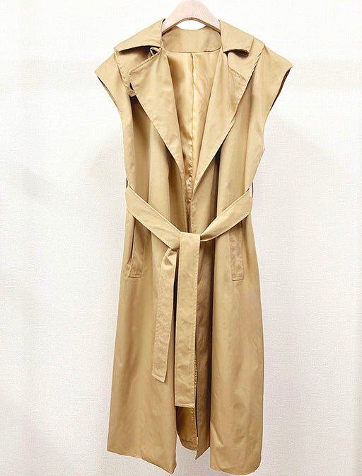 トレンチコートをベストスタイルにアレンジしたデザインです。 トレンチコート特有のディテールを活かしつつ、ベストにすることで着回し力がアップ。 ウエストベルトを調整してシルエットにメリハリをつけることで、シンプルでありながらもエレガントなスタイルが完成します。