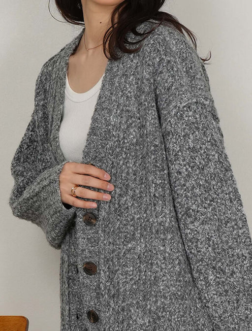 柔らかな質感が特徴のブークレーニットカーディガン。<br>ロング丈とノーカラーのデザインが、シンプルでありながらも洗練された印象を与えます。<br>すっきりとしたラインで、リラックス感のあるシルエットを作り出します。