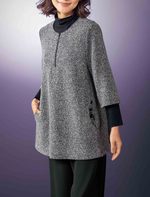 きれい見えシルエットの杢調オーバーブラウス。 軽やかな着心地が嬉しいカラーネップ入りの杢調素材に、ジャカードをポケット内にあしらった人気デザイン。 Aラインシルエットで気になる部分も優しくカバーしてく れます。