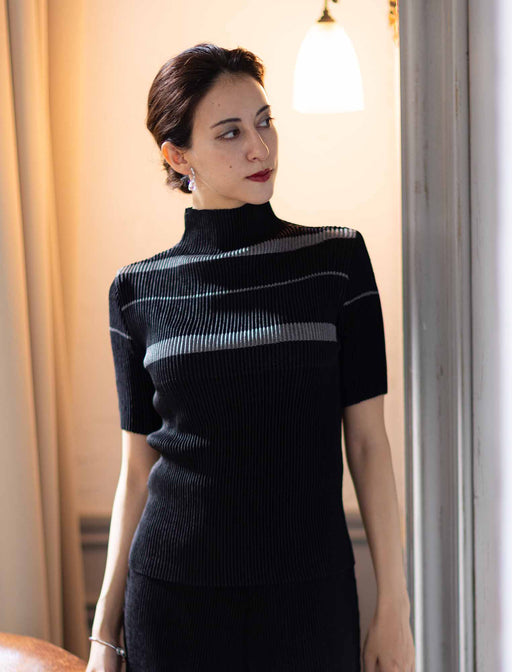 シンプルにして、確かな存在感 ― ボトルネックのプリーツトップス。 着こなしのアクセントになる新柄が今秋新登場!ノーブルなプリーツで、毎日を少し特別に。 お揃いになるジャケットやパンツを合わせたセットアップコーデもお勧め◎