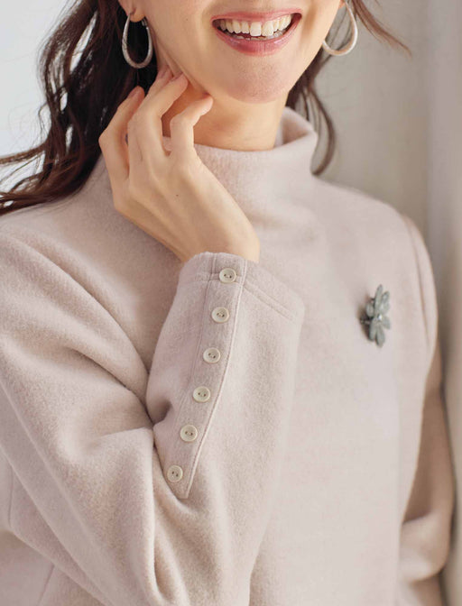 ふわっと起毛カットソーのぬくもり。 袖口に配した同系色の飾りボタンがポイント。 シンプルなプルオーバーを着回しやすいカラー2色セットで。