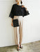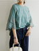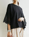 大振りのレースをあしらった袖がさりげない華やかさを添えるトップス。