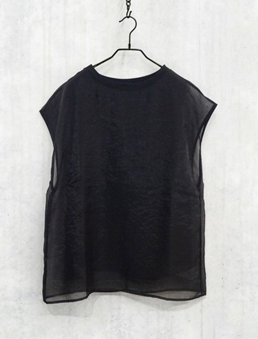 軽やかなオーガンジーを重ねた、涼しげで華やかなカットソー。<br>フレンチスリーブが腕まわりを優しくカバーし、女性らしいシルエットに。<br>ほどよい透け感と立体感で、シンプルながら印象的な一枚です。