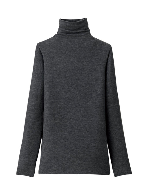 綿がたくさん入ったナチュラルな肌触りの吸湿発熱素材インナー。<br>なめらかなタッチで伸縮性があり心地よくフィット。タートルネックで首元カバー。<br>カーディガンと相性も◎<br>冬コーデのインナーとしても重宝するアイテムです!