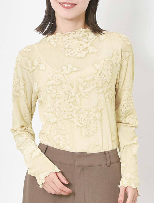光を受けてきらめく、主役級の華やかさ。上品な織り柄を楽しむ高見えトップス。 特別な日にも、日常のさりげないおしゃれにも。 着映えする繊細な素材感が、大人の女性の装いに上質な華やかさを添えます。