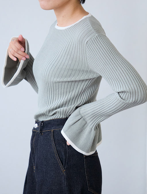 一枚で決まる、モードな手抜きなしトップス。 滑らかなニット地に対して、袖部分にストライプ布帛を組み合わせることで、軽やかなコントラストを演出。 ベーシックなボトムと合わせるだけで、十分な存在感を放つアイテム。