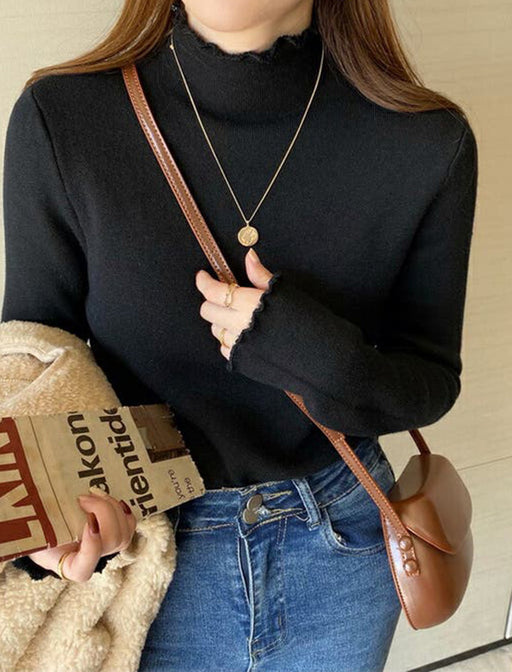 抜け感とモードな輝き、最旬モックネックで魅せるスタイル。 ラメ糸をコイル状に巻きつけた独特のネップ感が特徴で、表面に陰影と奥行きを与えています。 首元はややゆとりのあるフレンチモックネックで、抜け感があり、カジュアルながらも洗練されたデザイン。