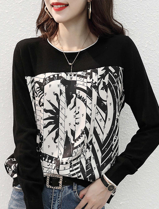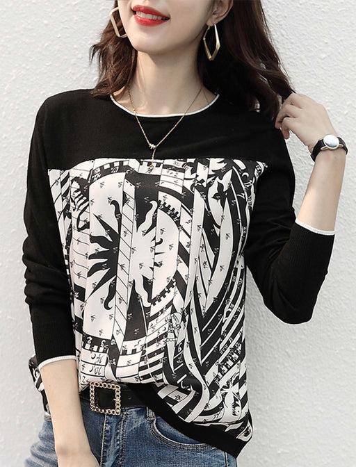 柔らかなニット素材に施されたプリントデザインが印象的な一枚。<br>適度なフィット感と快適な着心地で、シンプルながら存在感のあるコーディネートが楽しめます。<br>一枚で主役になるアイテムです。