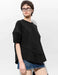 5分袖が気になる二の腕をさりげなくカバーし、すっきりとした印象に。