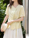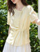 カシュクール風のフロントデザインが女性らしい抜け感を演出するブラウス。