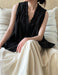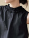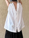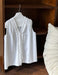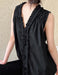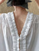 クラシカルなVネックデザインに花びら襟が顔回りを華やかに演出してくれるブラウス。