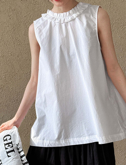 クラシカルなVネックデザインに花びら襟が顔回りを華やかに演出してくれるブラウス。 コットン素材で快適な着心地を実現し、やさしいシルエットが可憐な印象をプラスする一枚です。 シンプルながら2WAYで表情が変わる、カジュアルからフェミニンまで多彩な着こなしが叶います。