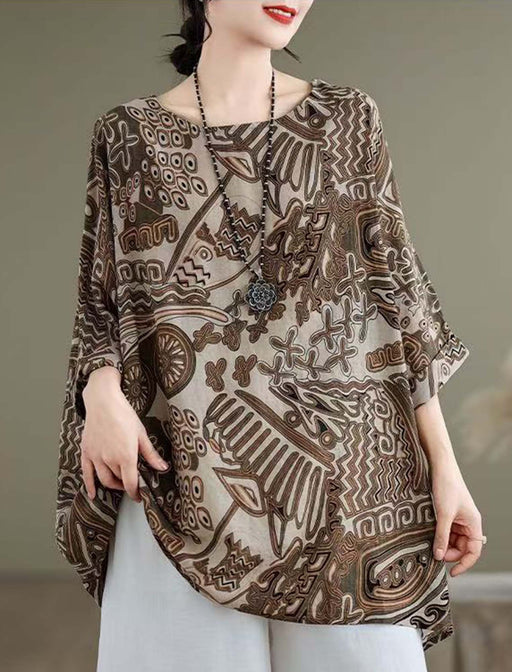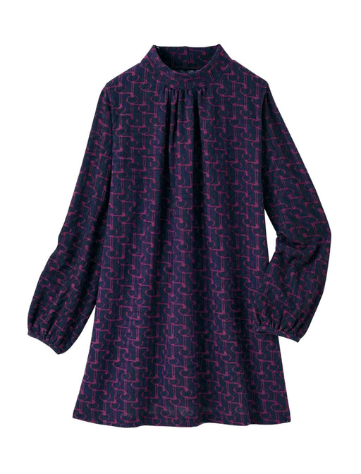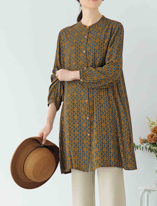 肌触りもシルエットも、ゆるりとうっとりなめらか。 レトロで美しい小紋柄風プリントのチュニック。 歩くたびにエレガントに揺れるゆったりシルエットながら、きれいな落ち感で細見えするのも魅力です。