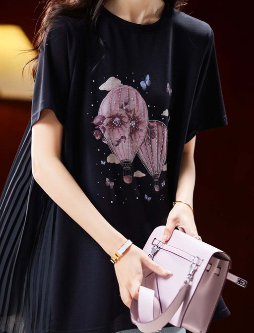 エレガントなバルーンモチーフにストーンを散りばめた贅沢なチュニック。 バックプリーツはきれいな落ち感と立体感を出しつつ、シルエットをすっきり見せる効果もあり◎ ほどよくリラックス感のある着心地は、いつものお買い物やカフェタイムにもピッタリ。