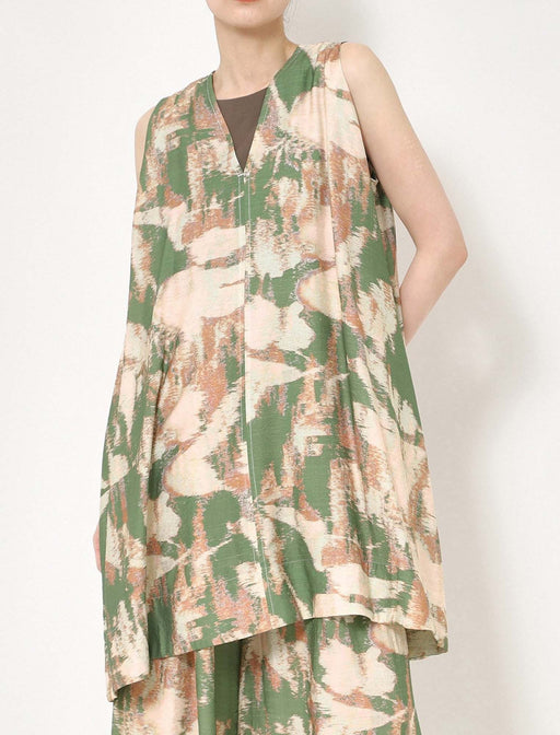 程度な落ち感の素材にかすれたボヘミアンプリントが特徴の軽やかなチュニック。 袖口や身頃に多数のタックを施し、立体的なシルエットに仕上げました。 お揃いのボヘミアンパンツと合わせて、グッと華やかなセットアップコーデに。
