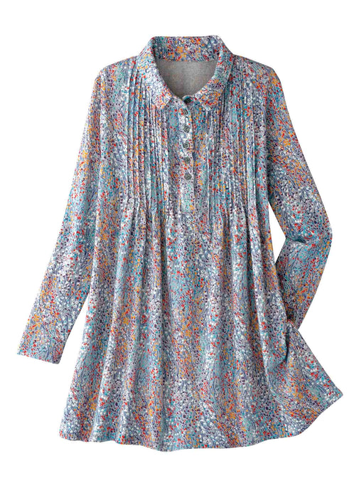 色鮮やかなプリントが、コーデを明るく整えてくれるチュニック。 ピンタックから広がる上品なフレアーラインも可愛らしい印象です。 ブラウスに立体感と奥行きを与え、単調にならない洗練された表情を生み出します。