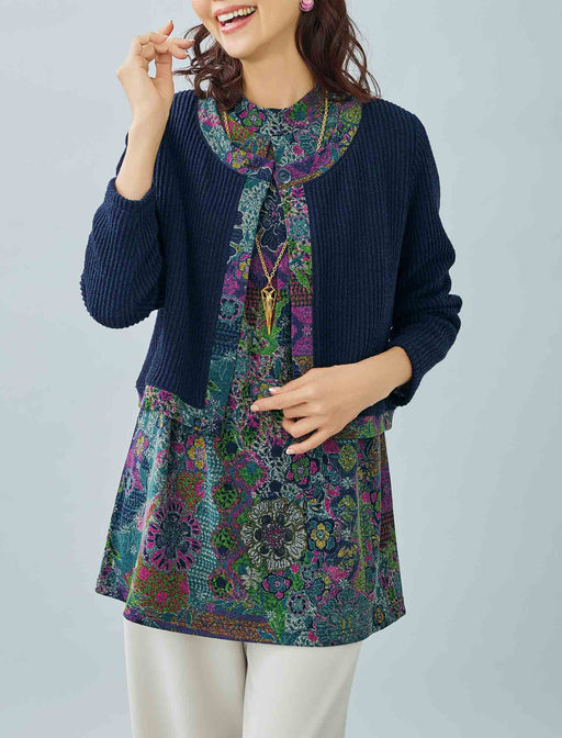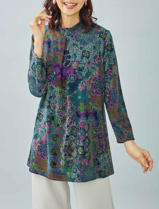 顔映りの良さが自慢の華やかな色彩美。 チュニックと同柄のプリントを 1 トリミングしたカーディガンアンサンブル。 単品での着回しも出来る優秀なアイテムです。