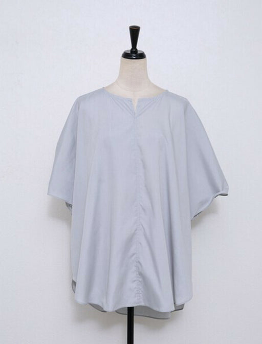 軽やかな布帛素材で仕立てた、涼しげなキーネックプルオーバー。<br>モモンガシルエットで身体を包み込むようなゆったり感が魅力。<br>リラックス感がありながらも、抜け感のある上品な印象に。