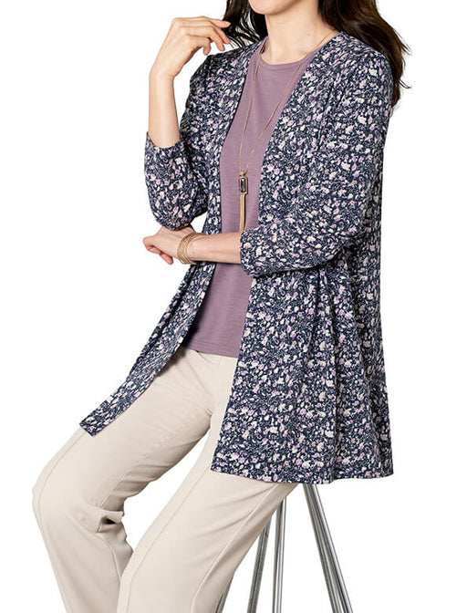 色柄の趣も風合いの良さも尾州クオリティ。 織物で名高い尾州「インレーニッ ト」が上質感を奏で小粋な装い に。 ふんわりシルエットで体型カバーにもなり、すっきりお洒落見え。