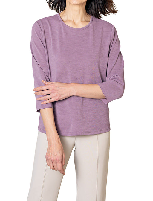 浮き立つ表情が繊細流麗なジャカード柄。 流れるような柄が洗練された雰囲気。 やわらかく伸縮性に優れたカットソープルオーバーでありながら、ブラウスのような着映え力で装いをクラスアップしてくれます。