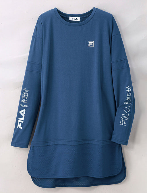 そのまま「重ねる」感覚、シャツ × カットソーの理想形。 シャツの清楚さとカットソーの快適さを掛け合わせ、気負わずおしゃれに見せる一着。 ピンストライプのシャツをレイヤードしたことで、ロング丈でも重く見えず軽やかな印象に。