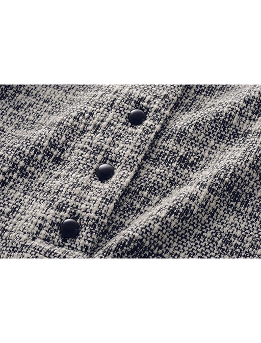 すっぽりかぶって優雅なツイードチュニック。 モノトーンでも華やぎのある表情で、広めの肩幅からすとんと落ちるシルエットは体型カバーにも優れています。 キーネックデザインは襟の高いインナーも合わせやすく重ね着に便利。