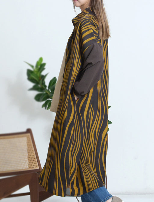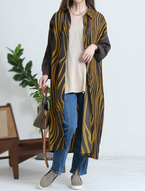 ヒッコリーストライプ柄が印象的なAラインチュニック丈シャツ。 縦ライン効果ですっきり見え、パンツやレギンスと合わせてバランスよく着こなせます。 さっと羽織るだけで、大人のカジュアルスタイルが完成する一枚です。
