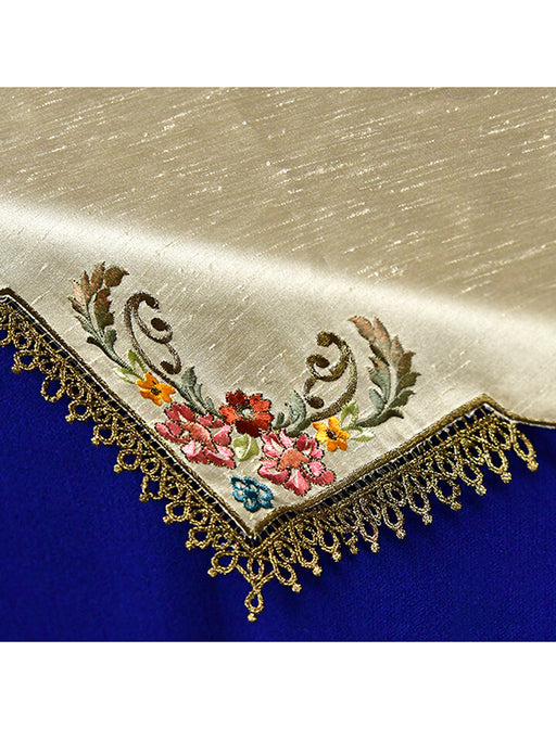 花柄レースの刺繍が上品なティッシュカバー付きポーチ。<br>背面にはポケットティッシュを収納できるスペースを備え、機能性も抜群。<br>コスメや小物を入れるのにぴったりなサイズ感で、バッグの中をすっきり整理できます。