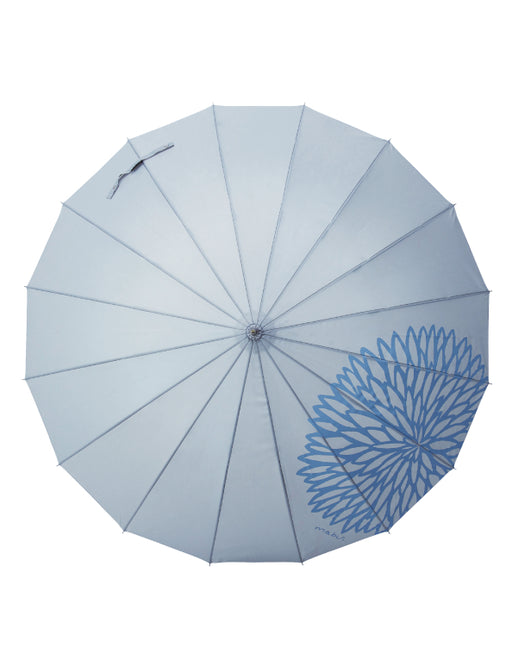 一輪の花が鮮やかなデザイン。丈夫で使いやすいベストバランスのロングセラーアイテム!<br>使いやすさと軽さを追求しながら改良を重ねてきた16本骨ジャンプ傘で、従来品の親骨58cmに比べ約20%軽量化し、UVカット機能もプラスしました◎