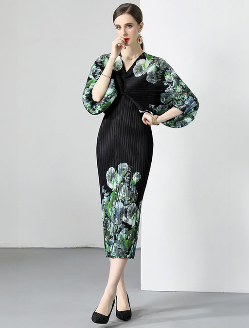 一枚で何通りものコーディネートが完成する、モダンで洗練された幾何学プリントワンピース。 ストンと落ちる美しいシルエットと、ドレープ性のある素材が、身体のラインを拾いすぎず優雅な着姿を演出します。 タートルネックやレギンスとのレイヤードを楽しんだり、上からロングカーディガンやジャケットを羽織っても◎