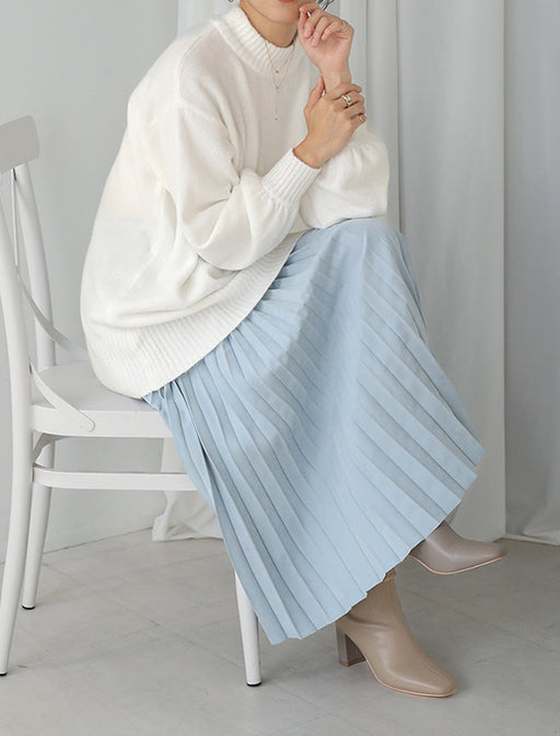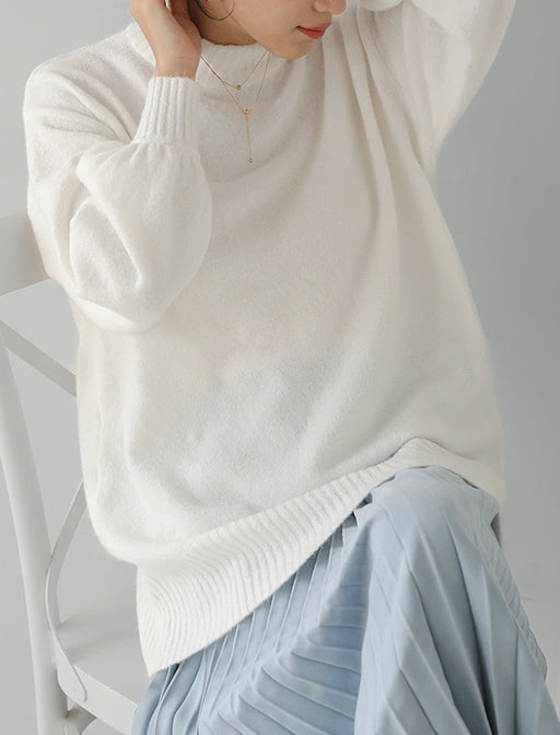 抜け感とモードな輝き、最旬モックネックで魅せるスタイル。 ラメ糸をコイル状に巻きつけた独特のネップ感が特徴で、表面に陰影と奥行きを与えています。 首元はややゆとりのあるフレンチモックネックで、抜け感があり、カジュアルながらも洗練されたデザイン。