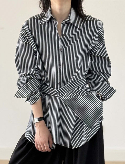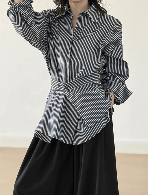 洗練されたシルエットと機能性を兼ね備えたデザインシャツブラウス。 エプロン部分は取り外し可能で、カジュアルからフェミニンまで様々なコーディネートに活躍。 肌に優しい100%綿素材は、一日中快適に着用いただけます。