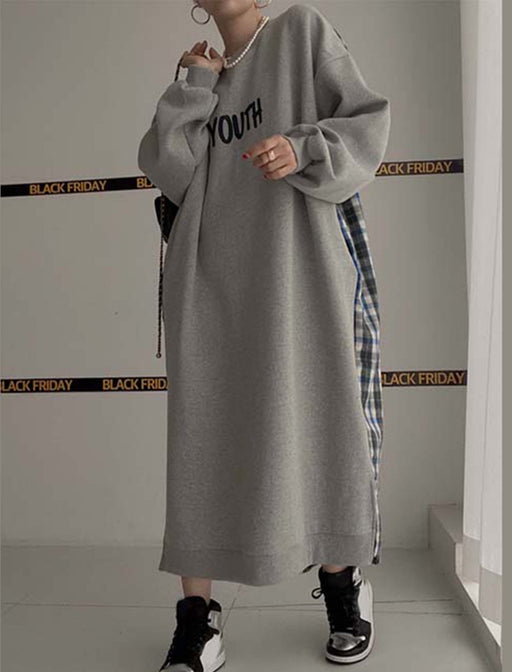 背中で印象を変える、切り替えデザインのロングワンピース。 チェック柄の大胆なアクセントで、後ろ姿まで抜かりなしのスタイルを。 足元まで美しく落ちるロングラインで、大人のリラックスタイムをお洒落に楽しんで。