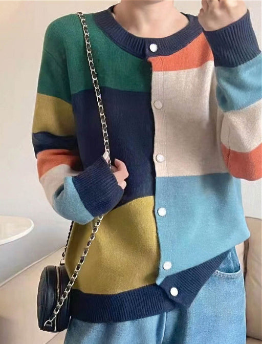 「色で遊ぶ、素材で魅せる」コントラストのある配色が、日常を彩る一枚。 鮮やかなカラーブロックデザインは、主役アイテムとしてコーディネートのアクセントに。 ボタンを留めてトップスとしても、羽織ってカーディガンとしても自在に使えて、着回し力も抜群。