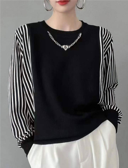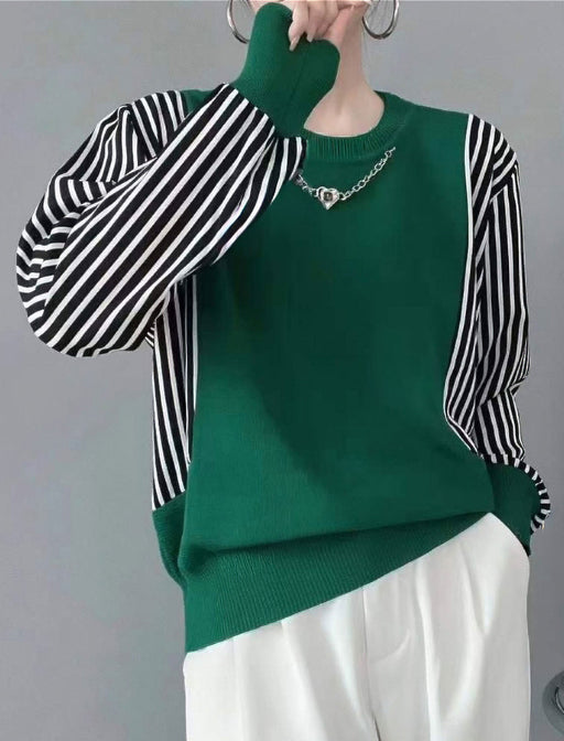 一枚で決まる、モードな手抜きなしトップス。 滑らかなニット地に対して、袖部分にストライプ布帛を組み合わせることで、軽やかなコントラストを演出。 ベーシックなボトムと合わせるだけで、十分な存在感を放つアイテム。