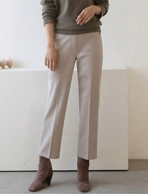 「まっすぐラインが美しい」履くだけで脚長&シャープに見せる一着。 腰回り〜ヒップにかけて適度なゆとりを持たせ、太ももから裾にかけてストンと落ちるラインがスッキリとした印象に。 オフィスにもカジュアルにもマッチし、コーディネートを選ばない汎用性の高さもこのパンツの魅力です。