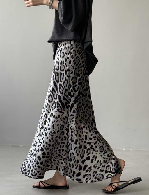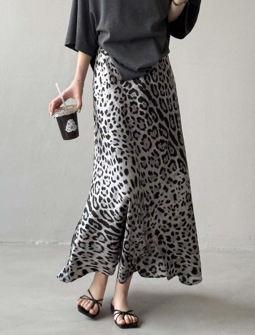 遊び心を楽しむ、大人の上品アニマル。 ほどよく光沢のある素材が、動くたびに柔らかく揺れ、エレガントな印象をプラス。 ウエストはすっきりとしたデザインで、フレアラインが自然に広がり美しいシルエットに。